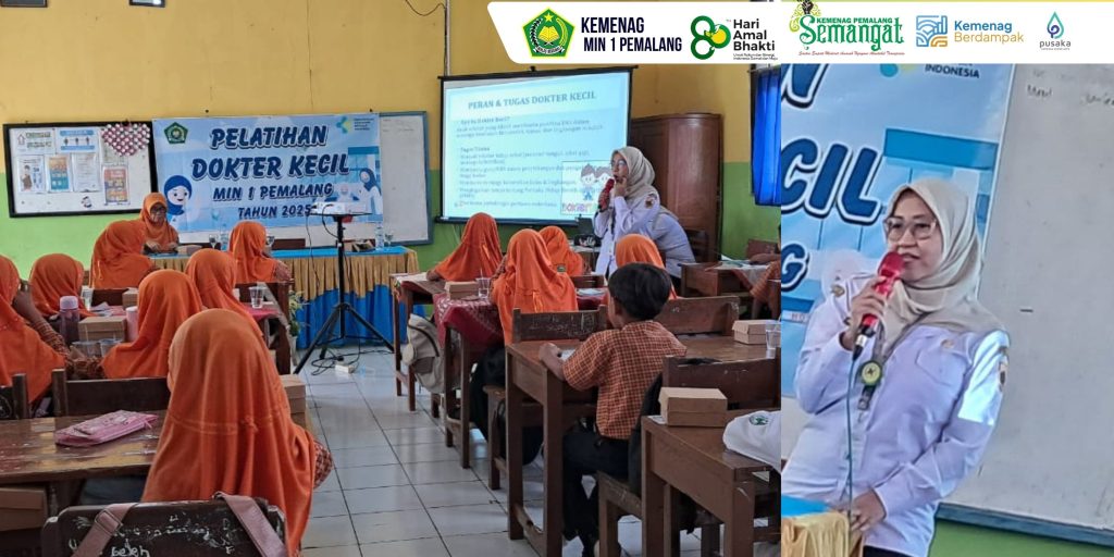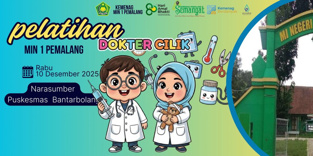Pemalang (Humas) – Dalam rangka pembinaan kesehatan anak usia sekolah, Madrasah Ibtidaiyah Negeri 1 (MINTU) Pemalang berkolaborasi dengan Puskesmas Bantarbolang menyelenggarakan kegiatan Pelatihan Dokter Kecil “Sipenolong Hebat”. Kegiatan ini dilaksanakan selama satu hari penuh pada hari Rabu, 10 Desember 2025, bertempat di ruang rapat MINTU Pemalang, dimulai pukul 07.00 WIB hingga selesai.